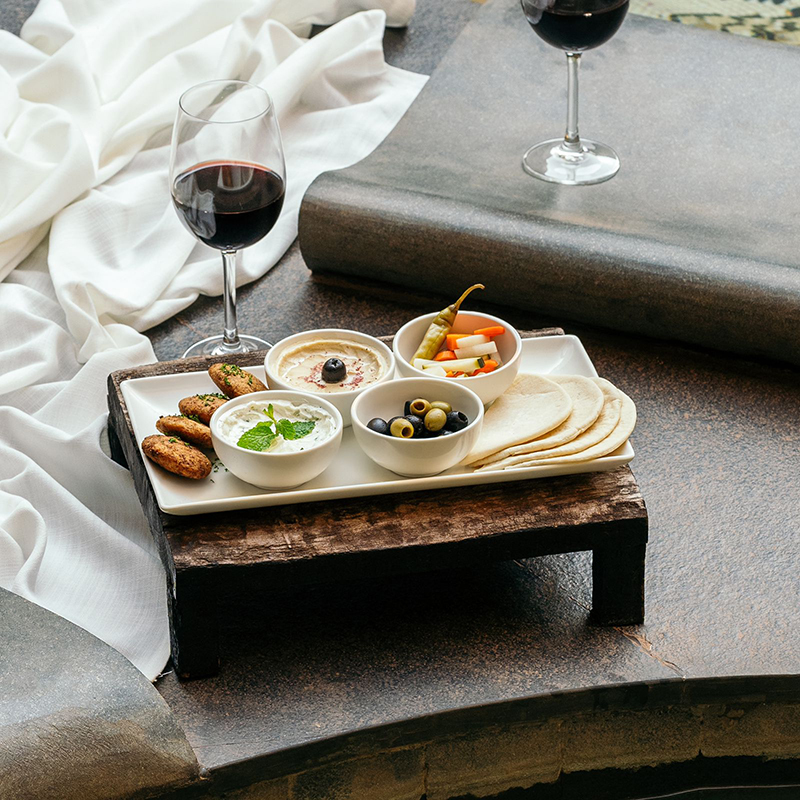 Amenities in the resort include a rooftop pool (Hauda), banquet and event spaces (Dholavira), workout terrace (Chhajja), cafe, bar & fine dining (The Great Bath Cafe), curio shop (Pitara), spa (Ayur), etc.
