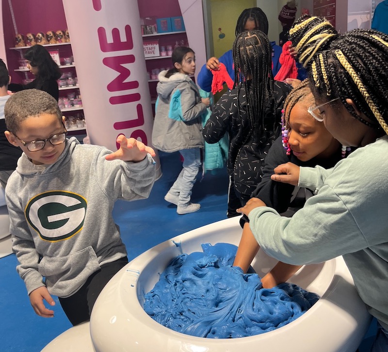 A mix of science and magic, the space is full of compounds from slime to kinetic sand to new innovations that entertain, soothe and surprise, otherworldly CGI videos, kaleidoscopic glow-in-the-dark moments, a 150-foot DIY bar to design your own slime (there are 4,320,000 unique combinations), and more. Every element of the experience was created to awaken your spirit with creative fun.