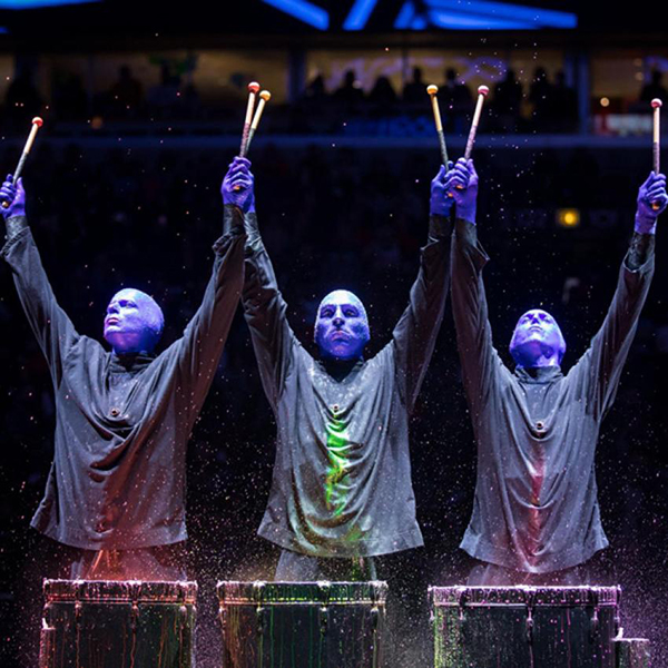 These performances feature three enigmatic bald and blue characters who take the audience through a multi-sensory experience that combines theatre, percussive music, art, science and vaudeville into a form of entertainment that is like nothing else.