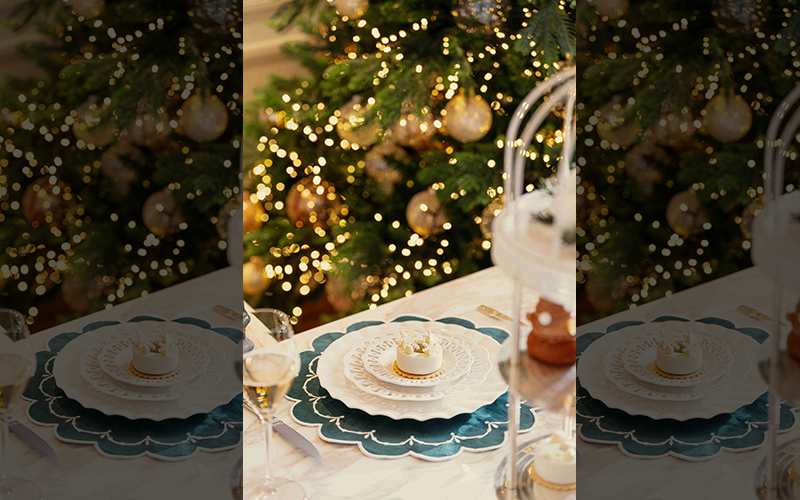 Guests can indulge in a selection of savoury delights such as wild mushroom tartlets with onion jam to start, Brie and tomato chutney sandwiches, and homemade Cajun turkey breast with apple and cranberry chutney. These are followed by an array of sweet desserts, including a Christmas fruit cake known to be His Majesty King Charles III favourite festive delight, a Snow-White dessert featuring tea, white chocolate mousse, and apple flavours, and a spiced ginger flower combining brioche with cranberry, mixed spices, and light mascarpone cream.