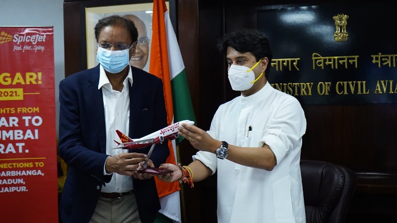 New Delhi/IBNS: Union Minister of Civil Aviation Jyotiraditya M. Scindia on Friday virtually flagged off Spicejet's first direct flight from Bhavnagar in Gujarat to Delhi.