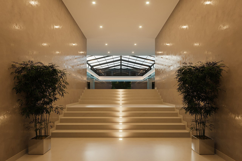 It has a swimming pool, sauna and massage rooms. The building consists of seven floors and an attic (on the 8 floor).