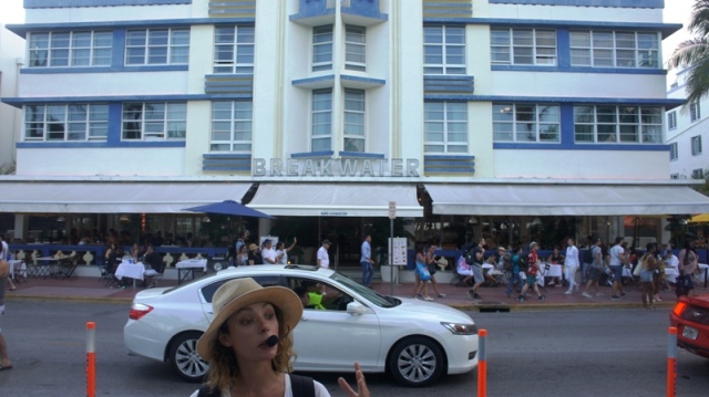 We stood across the street right in front of The Breakwater building which is a 1936 resort hotel and a beautiful product of the Art Deco style with the strong line and the attention to symmetry.