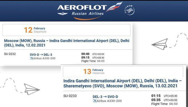 In a statement, the aviation major said flights to India on Moscow – Delhi route will operate from Feb 12, on Fridays and Sundays.