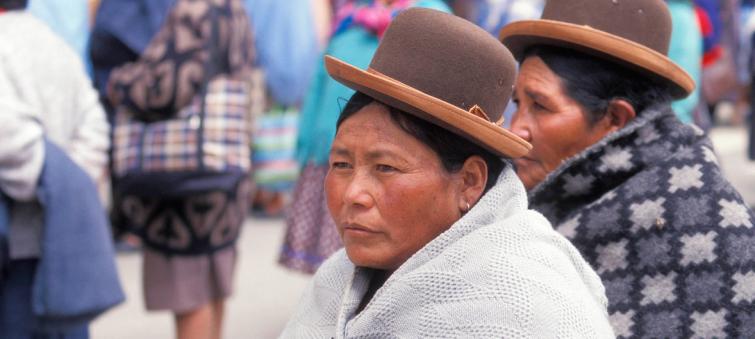 Women walk in the street in La Paz, Bolivia.