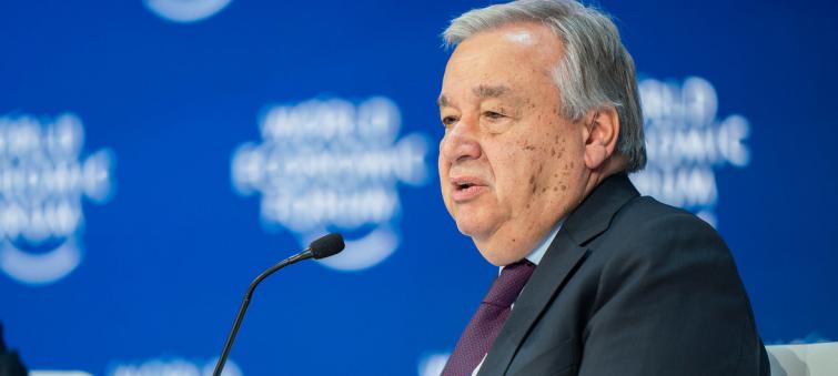 UN Secretary-General António Guterres addresses the World Economic Forum Annual Meeting 2020 in Davos-Klosters, Switzerland.