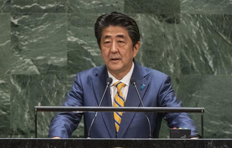 Shinzo Abe, the Prime Minister of Japan, addresses the 74th session of the UN General Assembly
