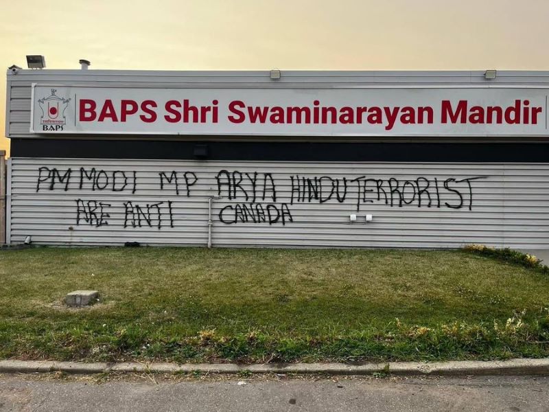Hindu America Foundation posted on X: " The @chcconline is confirming that the @BAPS temple in Edmonton, Canada became the latest Hindu temple targeted for an attack early this morning. The temple was defaced with slurs threatening @AryaCanada, one of a few Hindu Members of the Canadian House of Commons."