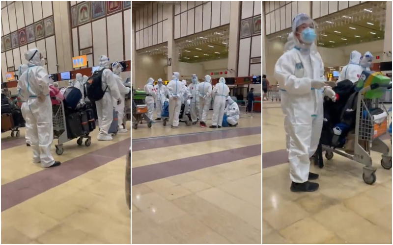 A video has gone viral on social media showing a large number of Chinese in PPE kits leaving from Karachi Airport.