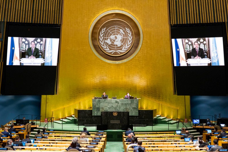 “Unfortunately, despite our positive engagement and the submission of credible and realistic written proposals, the negotiations were unsuccessful due to Turkey’s inflexible stance and insistence on maintaining the anachronistic Treaty of Guarantee and the right of intervention, as well as a permanent presence of troops,” said Mr. Anastasiades, whose pre-recorded speech was broadcast in the General Assembly Hall.