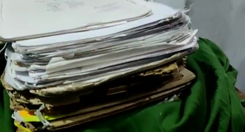 Dilapidated paper land records stored at the land records station in Lahore, Pakistan. Pakistan and India both are working to digitise land records to make them easier to access and reduce disputes and corruption. (Shiraz Hasnat)