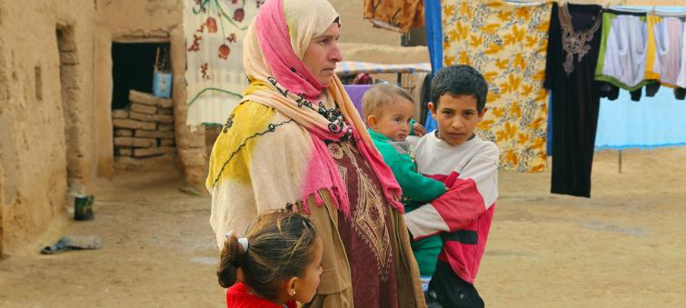 A displaced family living in the Al-Shadadi area of Al Hassakeh governorate, northeast Syria, where WFP is providing food assistance.