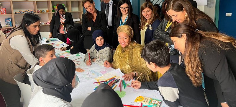 While at the UNICEF-supported Drop-in Center for Street Children in Beirut, the Deputy Secretary-General on Monday engaged with the children through an art activity where they expressed in drawings their aspiration for a brighter future.