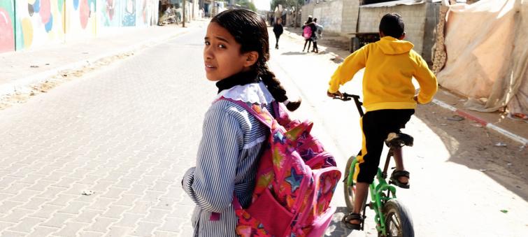 A 12-year old girl walks home after school in Rafah, southern Gaza Strip, Palestine.