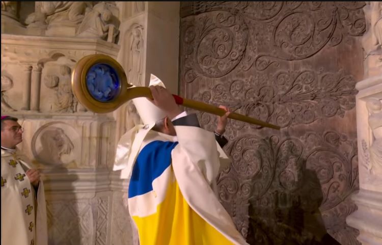 Archbishop Laurent Ulrich struck the cathedral doors with the tip of his staff, crafted from a beam that survived the fire. This symbolic act marked a solemn return to faith, accompanied by prayers, hymns, and organ performances, according to media reports.