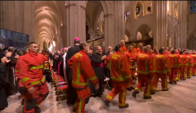 A total of 160 firefighters and workers who played critical roles in the rescue and restoration efforts were honoured with a standing ovation as they paraded through cathedral’s hallowed halls.