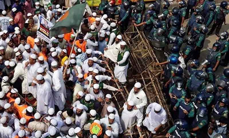 A mob demonstrated near the French Embassy in Gulshan, Bangladesh. Photo: Collected