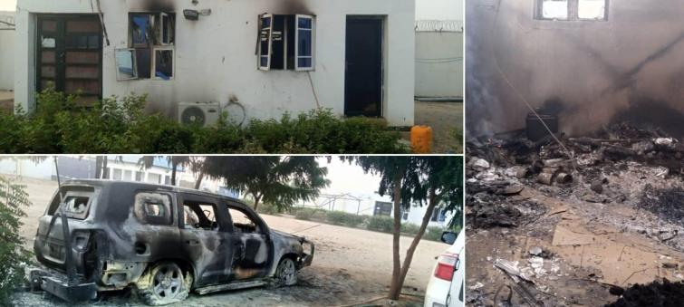 Non-State armed groups targeted the humanitarian hub in Ngala, Borno state, on Saturday evening, burning an entire section of the facility as well as a vehicle used in aid deliveries.
