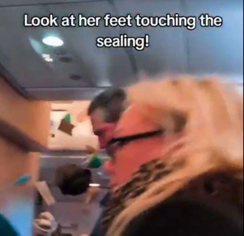 A passenger who shared a clip of the moment wrote: "Look at her feet touching the [ceiling]!"