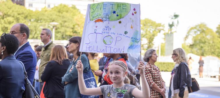 UN staff and their families gather at UN Headquarters in New York in support of the youth-led global climate strike.