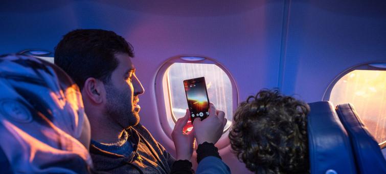 A migrant family looks out the window and take pictures as they undertake their journey for resettling.