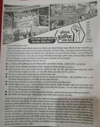 The demonstration was part of Bangladeshi Muslims showing solidarity with their fellow Uyghur Muslims.