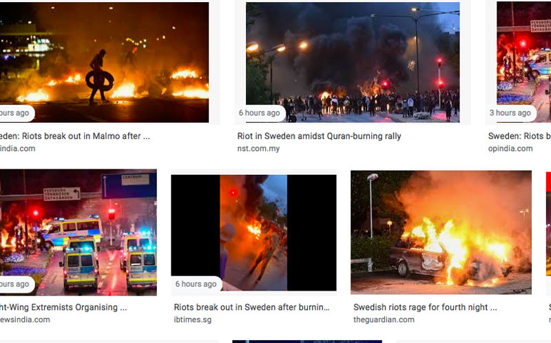 Stockholm: Stones were pelted at policemen as about 300 agitators set fire to tyres while protesting anti-Islam activities in Sweden's Malmo.