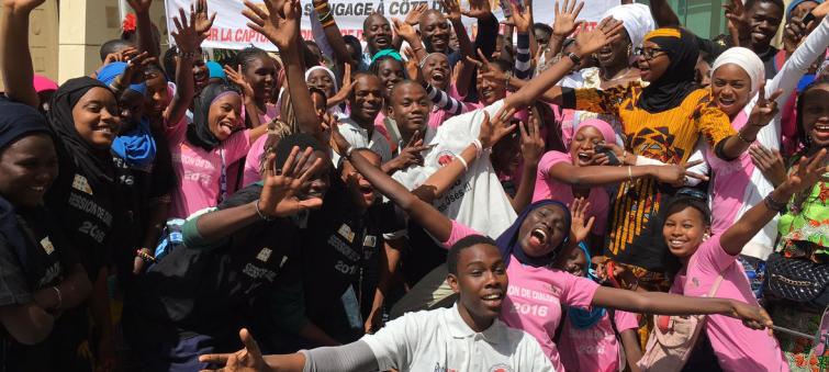 Youth from the Senegalese group Afriyan take a stand for teenage empowerment, following their meeting with UNFPA Regional Director, Mabingué Ngom Mabingué Ngom.