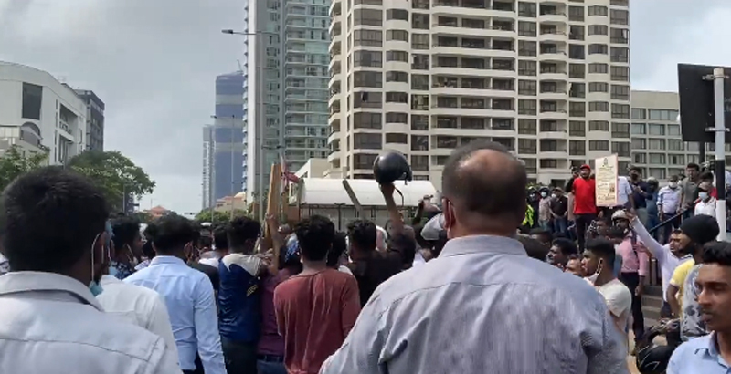 On Monday morning, pro-government protesters held a demonstration opposite the Temple Trees, the official residence of Prime Minister Mahinda Rajapaksa asking him not to resign.