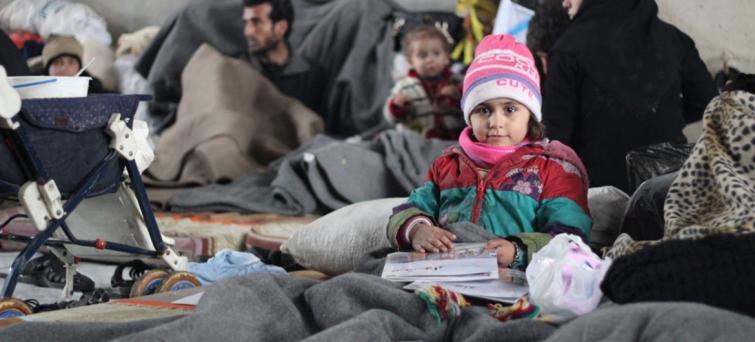 Photo caption and credt: UNICEF/Al-Issa Families that fled fighting in eastern Aleppo, Syria, take refuge in a large warehouse in Jibreen.