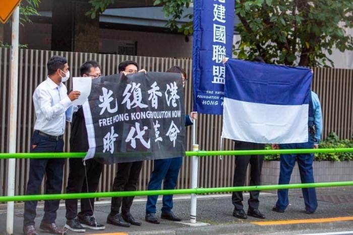 Tokyo: Representatives from Hong Kong, Tibet, Xinjiang, Taiwan, Mongolia and Japan demonstrated outside the Chinese Embassy in Tokyo on Thursday.