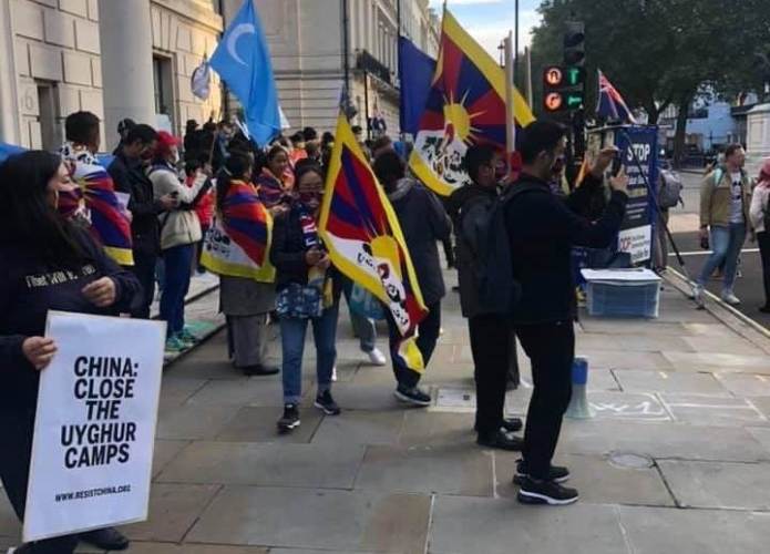 "The imposition of the Chinese language in Inner Mongolia Autonomous Region was also brought up, along with the imposition of the draconian National Security Law in Hong Kong, the expansion of labour camps in Tibet and the continued crackdown in Xinjiang," a protester said.