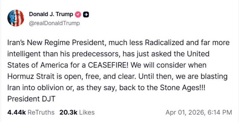 In a post on his social media platform Truth Social, Trump described Iran’s current leadership as less radical than previous administrations and claimed that a request for a ceasefire had been conveyed to Washington.