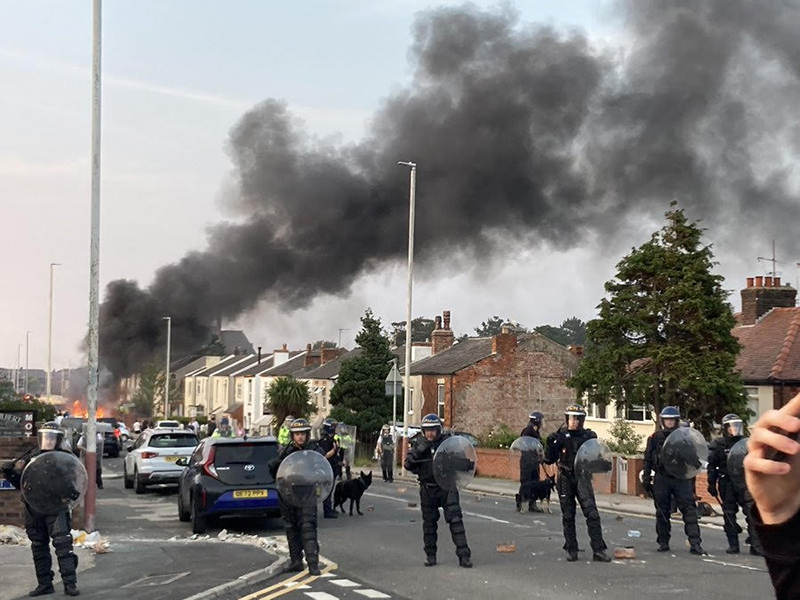 In Southport they had batons and riot shields out while cracking heads 😡 pic.twitter.com/V3UheEoK44