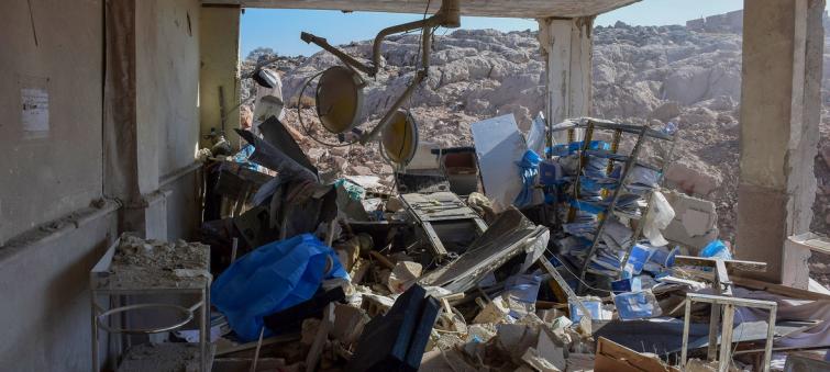 A hospital for women and children in Idlib, Syrian Arab Republic, lies severely damaged by air strikes that came in the early morning hours.