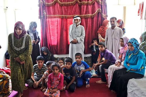 Members of a displaced Iraqi family in a hotel in the city of Erbil where they found shelter after fleeing their home. Photo: UNHCR/S. Baldwin