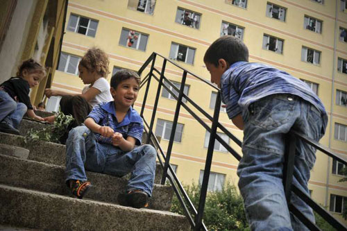(Young asylum-seekers play in front of a reception and integration centre in Bulgaria. Photo: UNHCR/B.Szandelszky)