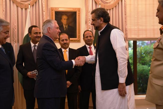 US Secretary of State Rex Tillerson meets Pakistan PM Shahid Khaqan Abbasi