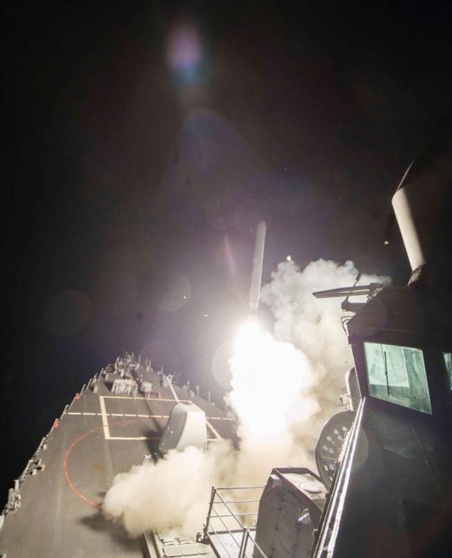 "The strike was conducted using Tomahawk Land Attack Missiles (TLAMs) launched from the destroyers USS Porter and USS Ross in the Eastern Mediterranean Sea. A total of 59 TLAMs targeted aircraft, hardened aircraft shelters, petroleum and logistical storage, ammunition supply bunkers, air defense systems, and radars. As always, the U.S. took extraordinary measures to avoid civilian casualties and to comply with the Law of Armed Conflict. Every precaution was taken to execute this strike with minimal risk to personnel at the airfield.